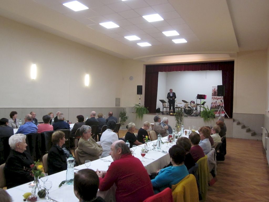 Posedenie pre seniorov pri hudbe kapely Heligonica v kultúrnom dome v stredu, 23. októbra 2019